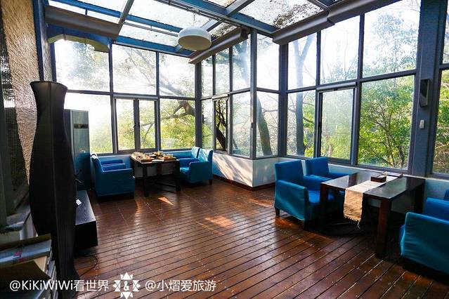 旧厂房改建的酒店硕大落地玻璃窗外,漫山遍野被绿色掩映,如同天然屏障,隔绝了闹市的喧嚣,夏季的绿荫依然赶走酷暑的燥热,满山的樟树可以驱赶蚊虫,为客人营造舒适的住宿环境。