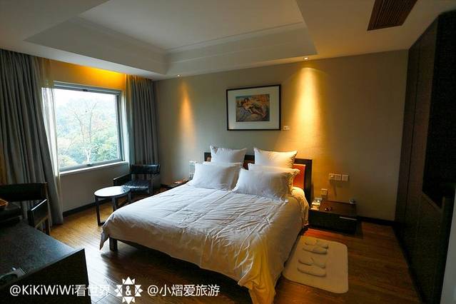 当夕阳西下时依窗凝望幽静凤凰山间绿荫林海,秋日微风吹拂树叶发出阵阵清脆合奏声,似有飞鸟经停却不见踪影,却又留下醉人的回音。在这里,没有西子湖畔的嘈杂,仿佛世外桃源般的隐士幽静,短暂停歇驻足,原来在热闹的商圈边,还有这么一处与世隔绝的优雅宁静。