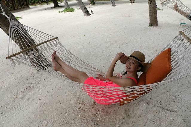 餐厅旁边的沙滩上有一个小吊床,可是真正在上面躺着享受午后惬意阳光的人没几个。。。大家都是来拍照的,照完立马走人。