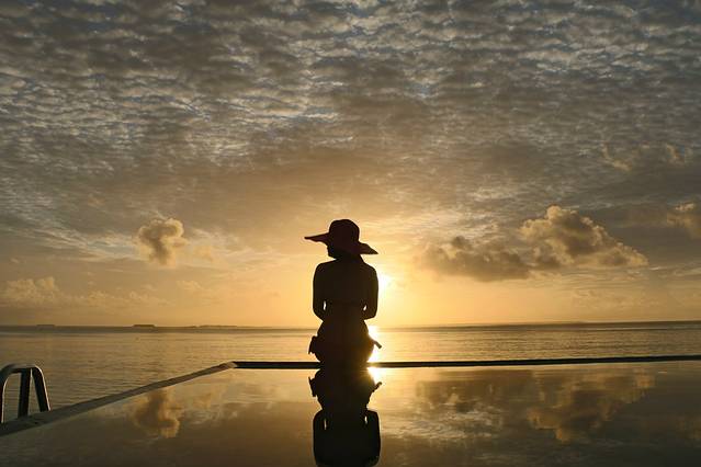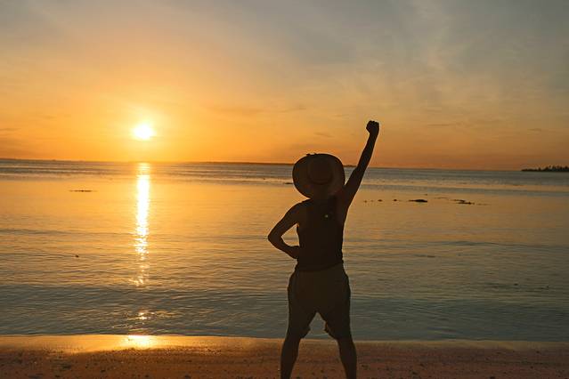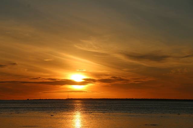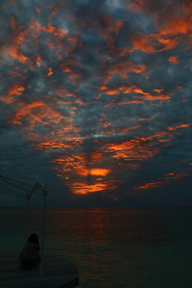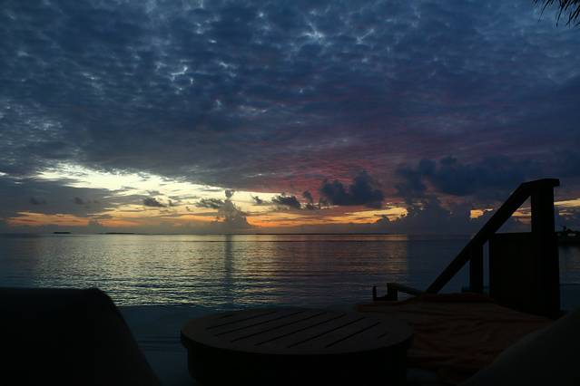 在水屋看的第一个日出。海面出奇地宁静,仿佛世界上再没有别人一样。
