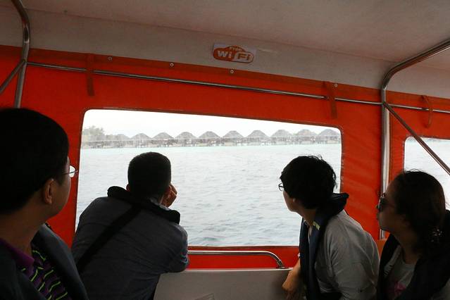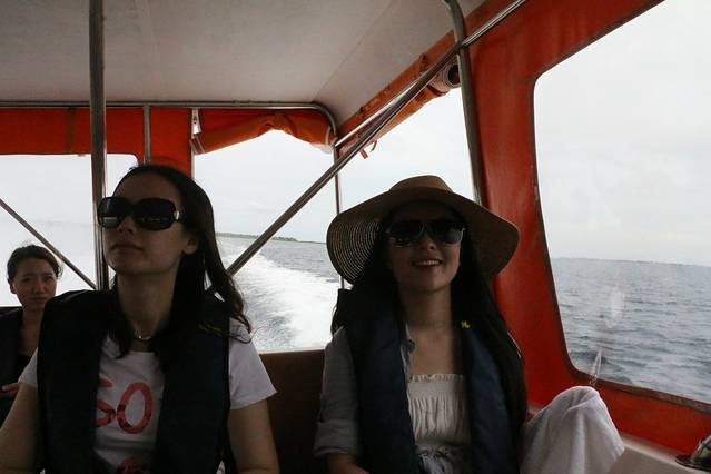 上船,船上还有WIFI的标记,不过不能用。登岛时的船设备很齐全也很新,离岛时坐的完全就是一艘小破船。