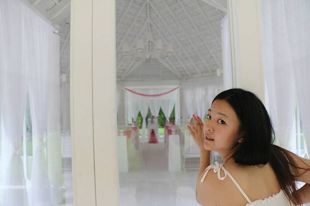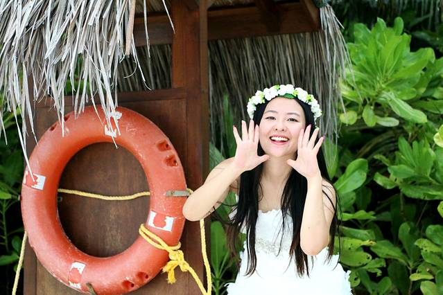 借了萌妹子的婚纱拍照,来这么一趟,不拍婚纱可惜了。不过AYADA有婚纱租借服务,还有拍婚纱照的服务,不过我们带了婚纱就直接没去问价钱了,估计不便宜。