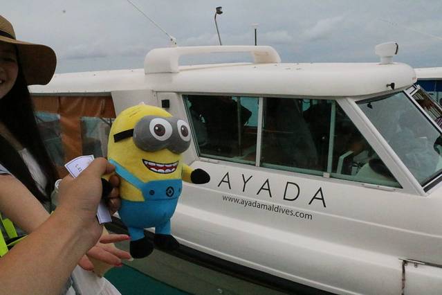 这个中转岛对应很多岛,到了码头以后大家都在找自己岛的船,有种下飞机被黑车司机拉客的感觉o(╯□╰)o看见AYADA的时候有种莫名的亲切感,这是小黄人本次旅行中的最后一次入镜(可怜的小黄人T.T)