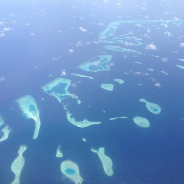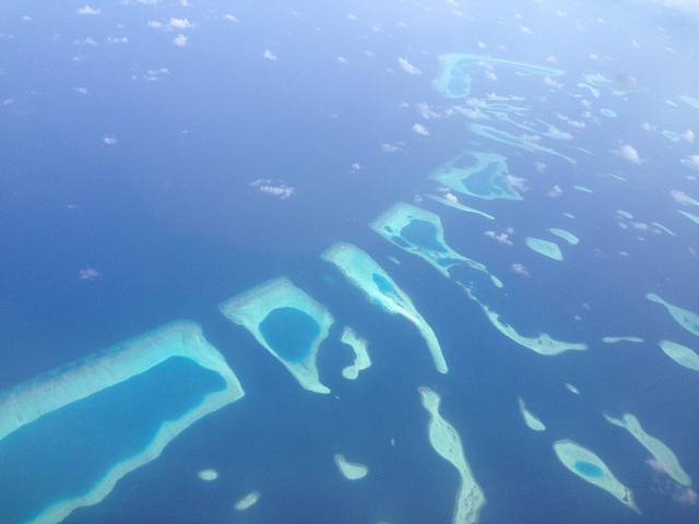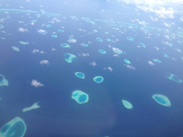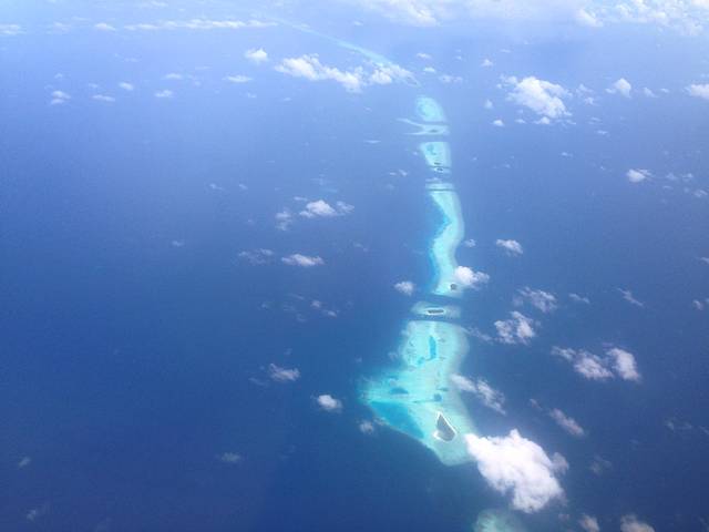 以前在别人的游记上看到过很多次,但是当自己亲眼看到的时候还是被深深地震撼住了。我们坐的是小飞机,只有左右两边各两排位子。于是,在飞机上我直接解开安全带,为了保证自己的视线一分钟都不离开窗外,能看到有岛屿的海面。