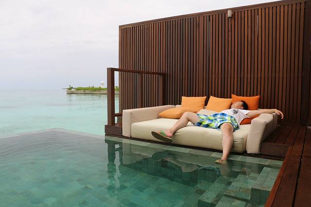 为了防止误机事件的发生,我们在成都停留了大半天时间,在商场打发时间时,萌妹子夫妇竟然只用了一个币抓了一个小黄人,换做平时幸运的人是我们,可现在幸运的变成了小黄人!!!在家睡着觉竟然什么都不因为就免费获得了一次马尔代夫豪华游的机会!!(不过在我们到了岛上以后,小黄人就再也没有出过镜,因为他的爸爸妈妈已然沉浸在阿雅达的美景当中无法自拔了)图为小黄人在酒店大堂喝果汁