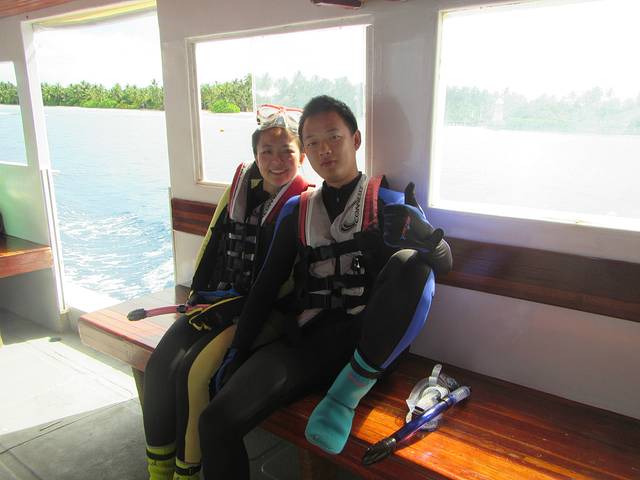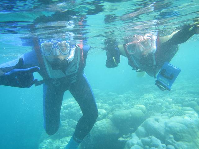 在水屋里收拾一番后,预约的浮潜时间到了。穿上装备坐船出海浮潜了(*^__^*)