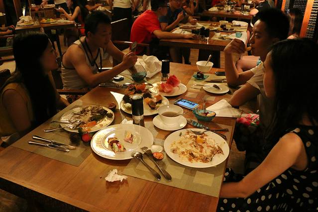 不知不觉就玩到了吃晚饭,AYADA是包早餐和晚餐,指定进食点就在主餐厅magu,菜品不多,味道也一般,不过水果很丰富。