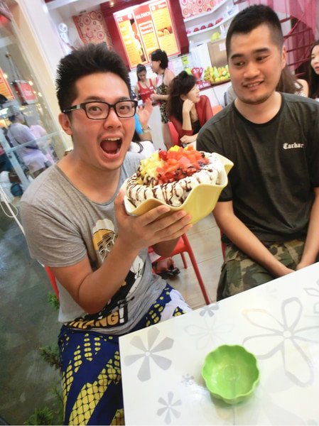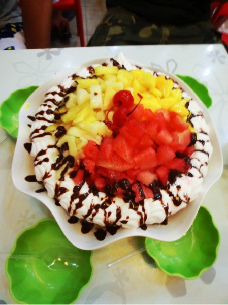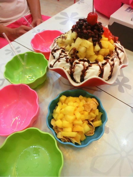 我们让她们不要放香蕉,多给点芒果,这个冰激凌好好吃,这个小的是300比索=42元