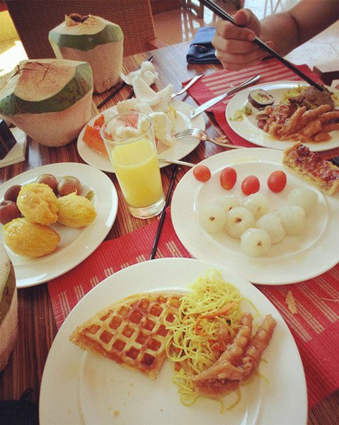 超级推荐万豪的早餐,我们从9点吃到11点,午饭都省了,这里的椰青是免费拿的,各色品种吃个饱饱的在出发~