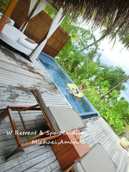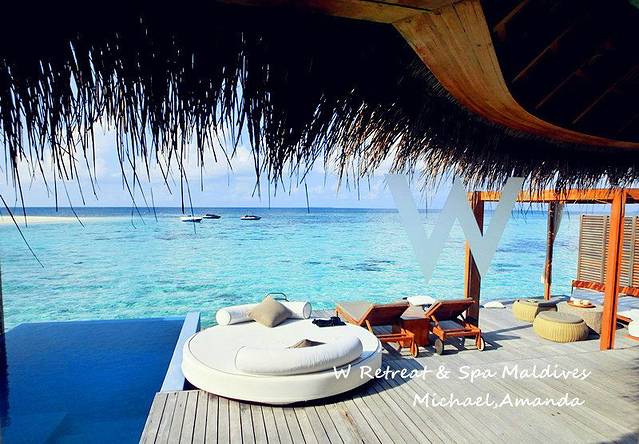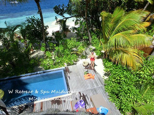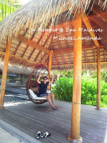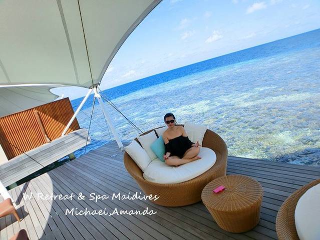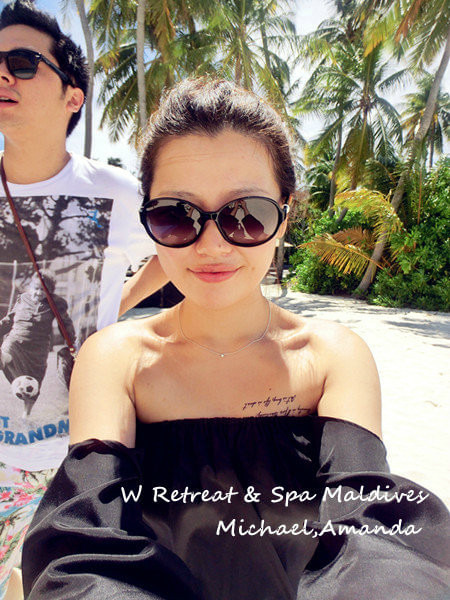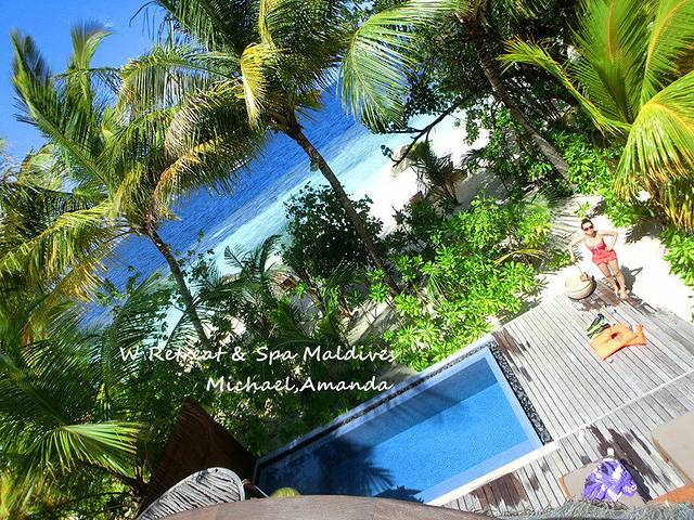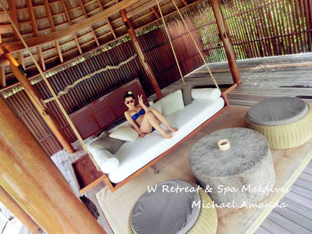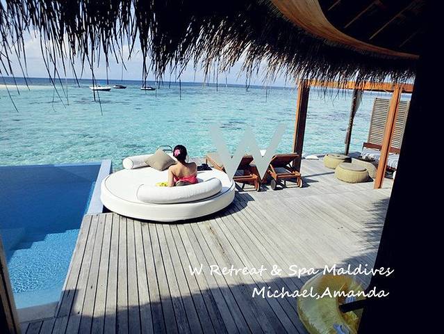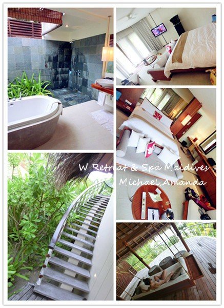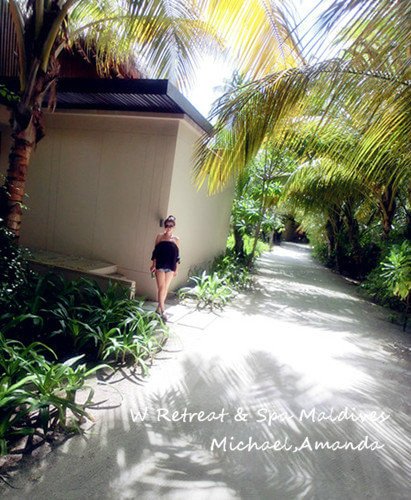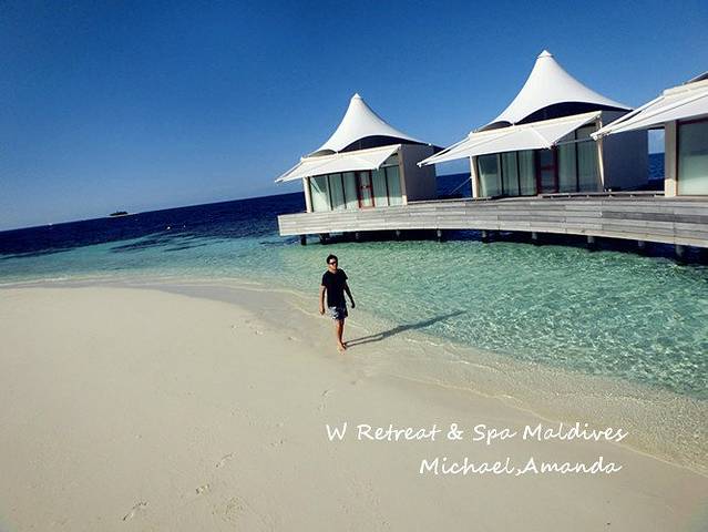 上图:噔噔噔!到达W岛啦~!我们是先住2晚沙屋(沙屋是2层楼,去过水屋之后我和老公还是喜欢住沙屋,而且W岛的沙屋比较少!所以也就没有住4付3了)