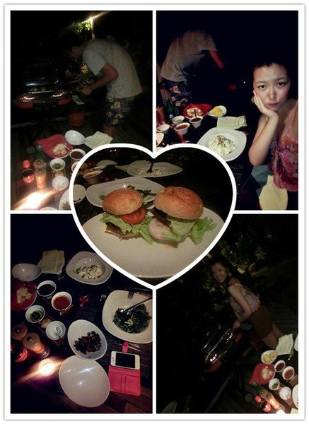 上图:每个房间都有烧烤架,小黑把食物送到房间之后教我们如果操作就走了,是要自己烧的,都是老公烧的别看这小小的汉堡我可是最后实在吃不下去!