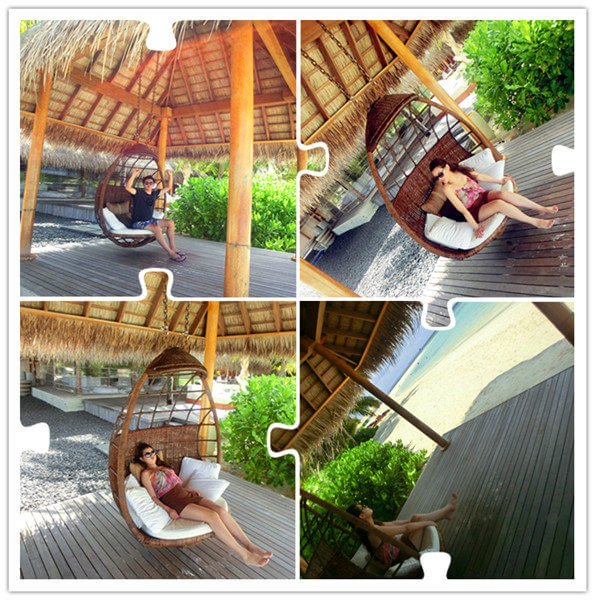 上图:这就是沙屋2楼了,很奢侈有没有就一个摇床!在上面发发呆看着海滩太惬意了