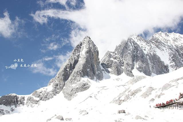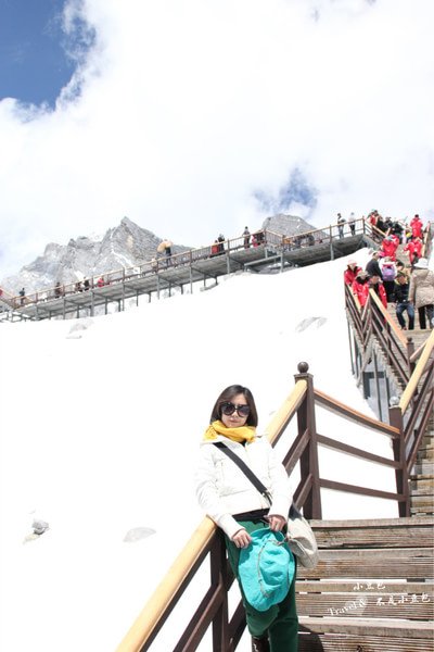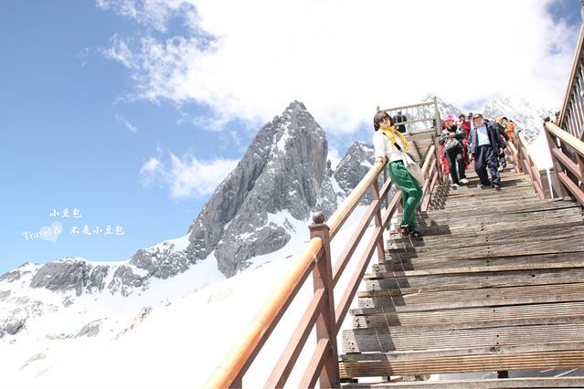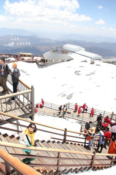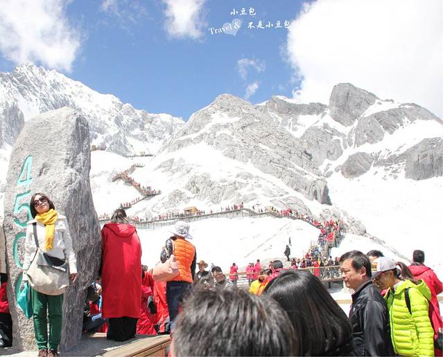 从印象丽江出来之后,我们就要上雪山了!!上雪山要排队坐缆车上去,人真的是超多啊~跟同行的伙伴聊天加等待,所以也没觉得太久,一会便坐上了缆车。缆车缓缓向上,越往上越陡,回头往下看,真的很高很陡。15分钟后,当我走出缆车往外面看的一瞬间,惊呆了,眼前只有一片白晃晃的雪白和蓝蓝的天,赶紧把准备好的墨镜戴上。现在想起来,还会被惊艳到,那种壮观是我从没见过的。就像要做一件成功的事同样需要艰辛万苦,一点一点的才会看到希望。