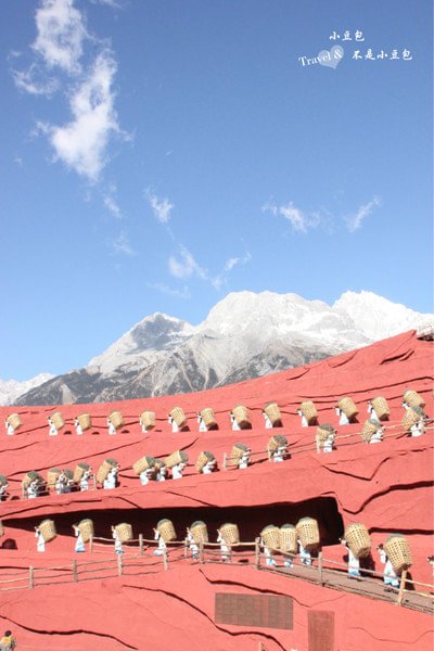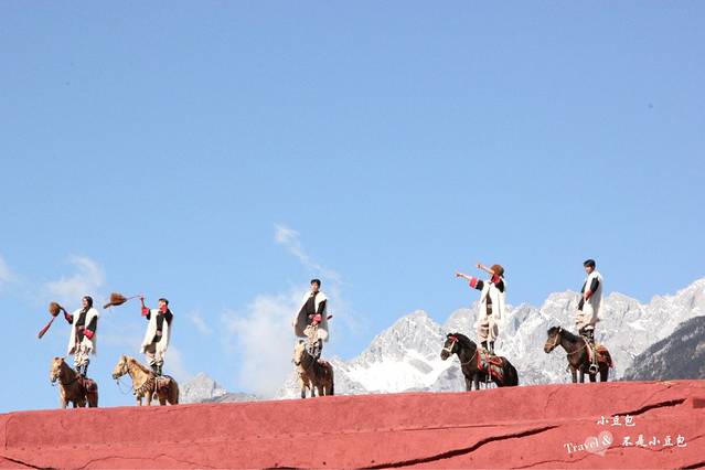 去雪山之前先去看了印象丽江,这是一场空灵的演出。场景布置的很精致 ,蓝天、雪山、红色的建筑,还有时而高亢时而柔美的音乐,看着这场表演,瞬间被一种简单纯朴的演绎所感动。