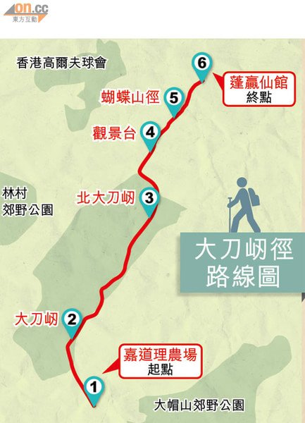 大刀屻左臨八鄉錦田,右望大帽山林村。山勢峭拔,薄如刀刃。為新界西北部其中一條最熱門的行山路線。