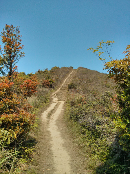 大刀屻我是不想再到了......簡直是噩夢......成語中的七上八下在這裡應靈了.......輾轉在各個上上下下的山頭中......我累得要趴了.......後來實在走不動就用包剪錘的方式繼續下去.......路人們看見我們都忍不住笑了.......