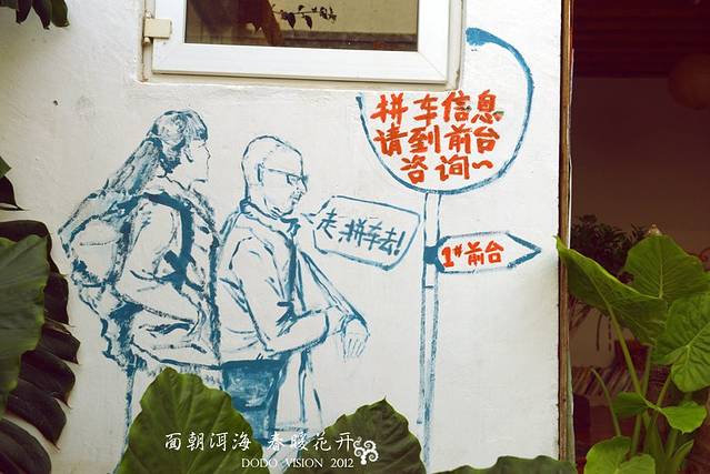 从这幅可爱的涂鸦看来,在双廊拼车是件多么普通又重要的事,几乎每家客栈的门前都有个拼车信息板,无论你回大理或丽江,总能找到你的那些伴
