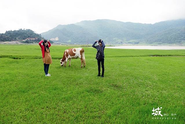 这头牛实在太美貌了,大家抢着跟它合影,它一直保持着这种不想鸟我们的状态和pose