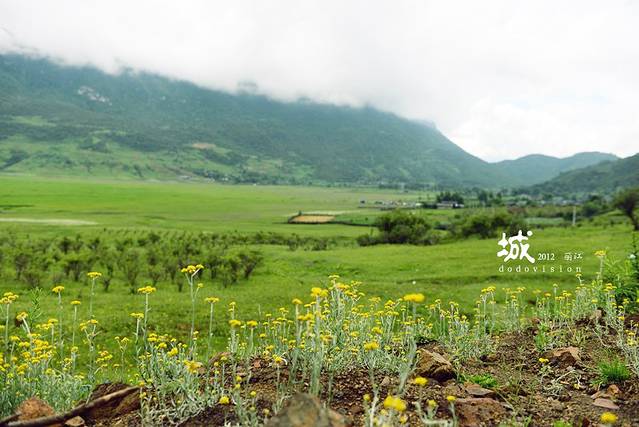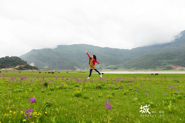 当地接待的朋友说来丽江不可错过的就是来文海,每年的6-8月这片草甸上长满了五颜六色的野花,从束河向南沿着盘山公路盘旋而上,翻过几座山,我们停在了一个公路旁,放眼望去整片碧绿的草原上洒满了星星点点的花,想投入这一汪花海的怀抱也不是那么容易的,深深浅浅的草地上布满了“陷阱”,小心水洼和牛shi哦~