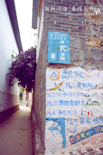 双廊都是这样的小路,第一次去肯定迷路,但是路迷多了,也就渐渐能找到来时的路了,双廊沿洱海的黄金海景基本都建客栈了,每个拐弯路口的墙上都涂满了这些客栈的小路标