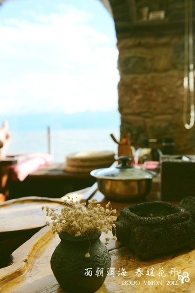 这棵树旁边是太阳宫的一个下客码头,怪不得进门的入口那么狭窄且隐秘,它真正的入口在这里呢~一下午的时间看到一批批住客坐船而来,管理者告诉我们,太阳宫有专门的船去大理的任何码头接客人,这样就避免了拿着自己庞大的行李箱转火车或汽车之类的,一部船就直接进入太阳宫了,当然中饭晚饭也全部可以通过船来外卖到酒店里
