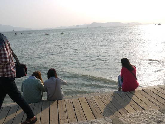 然后我们去了就是环岛路闲逛,太阳很好,风也很好。很多人在环岛路上骑单车。