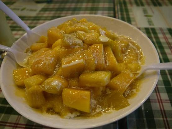 逛到一个芒果餐厅,有简餐和甜品,这是它家的招牌牛奶芒果冰,虽然25一份,但是分量和味道却十足的好,2-3个人都吃不完,芒果奶昔也很好喝。至于店员推荐的芒果沾酱油,还是没有尝试,想想也觉得这2个味道不搭 - -