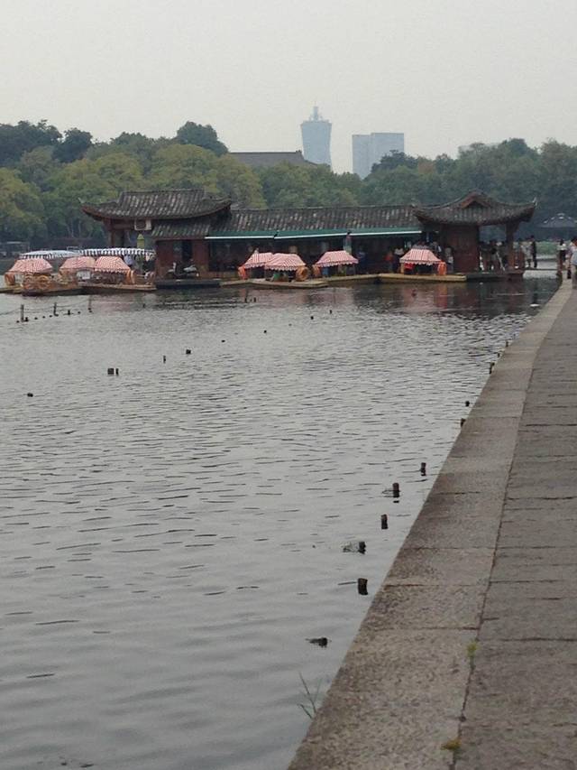 早上4点,在兴奋了几乎一夜没睡之后,打车去机场,凌晨雾霾像仙境一样,有种腾云驾雾的感觉。 6点,到达机场。然后就开始纠结是否要航班延误的时候,上了飞机。由于时间较早,有提供早餐额~! 8点半准时到达杭州,乘坐机场大巴在10点左右到达武林门,订的99旅馆连锁杭州武林广场店离武林广场很近,打车5分钟就到了酒店,虽然位置不现眼,但酒店很干净,还可以供吹风机,距离西湖只有20分钟路,在酒店休息一会 12点左右,跟前台打听了一下路线,背上小包包就出发去西湖,一路走来很开心,很享受这难得的放松时光,沿着西湖一路走,去寻找传说中的西湖十景,第一个找到的是断桥,不是冬天,所以没有看到【断桥残雪】,但是断桥上满满的人也真是醉了~断桥边是第二景【曲院风荷】去的时候已经秋天了,荷花已经没有了,只剩下大片的荷叶;断桥下来是白堤上的第三景【柳浪闻莺】风轻轻吹在脸上,柔柔的吹起柳条,很舒服;白堤再往前就是第四景【花港观鱼】拍了逆光的照片,很喜欢;走过白堤,就到了第五景【平湖秋月】因为没到晚上,所以没看到月亮;稍适休息后去了杭州博物馆,中国茶叶博物馆,还有太子湾,都是免费的。傍晚经过了苏堤,当然啦【苏堤春晓】在春天,也没看到。最终看到了【雷峰夕照】凑齐了7景,【三潭映月】、【南屏晚钟】和【双峰插云】以后有机会再来寻找吧~!