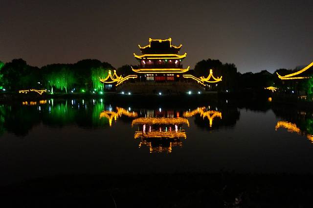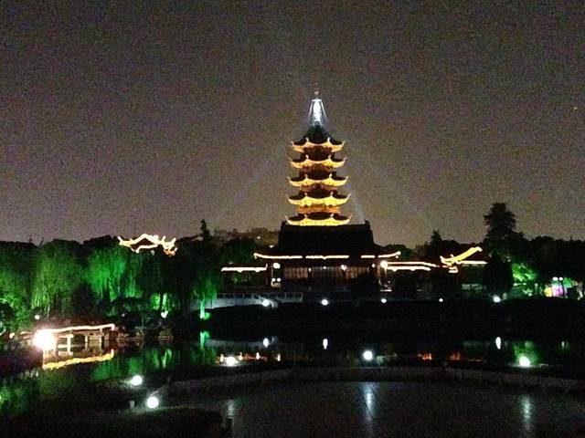 晚上还是跟了一个小团坐船夜游了,路上船老大叫我们说,吴侬暖语,柔柔的。坐完船去的盘门景区,盘门是苏州八座水城门之一,里面的瑞光塔是孙权为他母亲造的,照塔是有讲究的额,不能随便照,这里的水据说就是西游记里面,唐僧到女儿国之后喝了怀孕的水呢