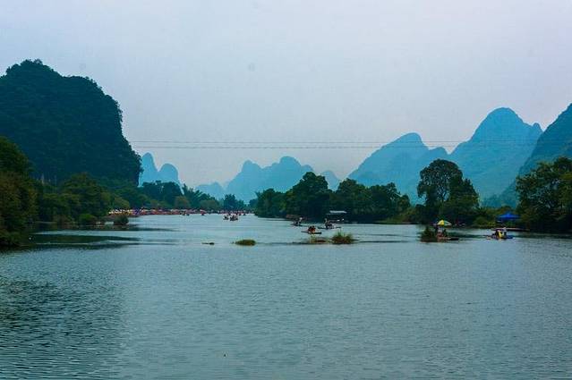推荐线路是往遇龙河这段。漓江已经收费了,但遇龙河还木有,个人认为遇龙河的景观并不比漓江差。都是喀斯特地貌加水系。