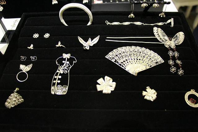 这是一家可以手工做戒指的银饰店。这一套古风古韵的银饰,灰常漂亮。。。左边的戒指很可爱喔。