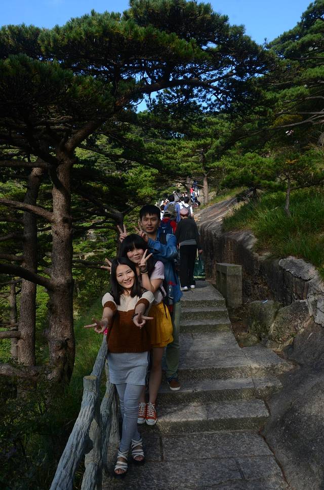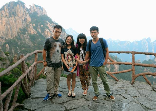 四人行的黄山之旅。左起石头哥、楼主、楼主密友、其男友。2013.9.19日早出发,到达黄山已经下午时分。