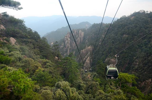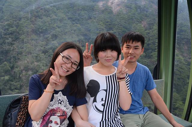 缆车上,某人竟然晕缆车,哈哈,估计是恐高。