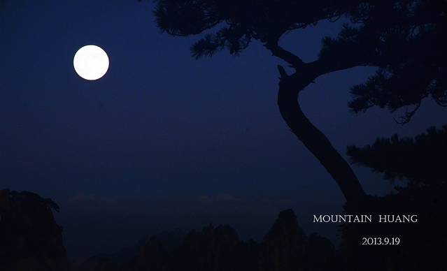 不知爬了多久,我们就已经累得不行了,其实第一天的人还不是很多,爬的过程中还是能够按照自己控制的节奏来的,最后我们仨实在不行了就求助于缆车了,还是代步的缆车方便了,不多久我们就到达了莲花峰,在这可以租帐篷、吃饭、观看夜景。月圆人和是那晚的所有,我们跑上有跑下,看哪里的拍照月亮会更漂亮。
