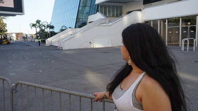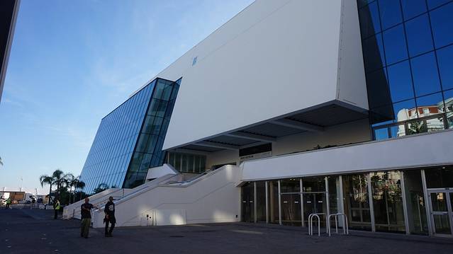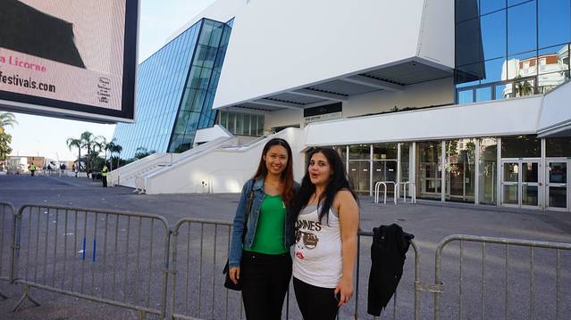 注意啦!! 现在我们身后的就是PALAIS DES FESTIVAL。 这里就是大名鼎鼎的戛纳电影节举办的地方。中文应该叫影宫还是影城?那个各路女星争相斗艳的地方,还记得范爷有次在这穿了龙袍礼服而一炮而红!!总之,你在报纸上网上看到的那个走红毯的地方就是这儿啦!是不是完全看不出报道中那种高大恢弘贵气的感觉??没错!就算我在现场看也一样,白色的建筑还有一些蓝色的玻璃,在我看来就是一个简陋的类似少年宫的建筑!而且现在不开门,所以只能在围栏外边留影,也看不见里边啥样。总之一句话,外边看真的很烂啦