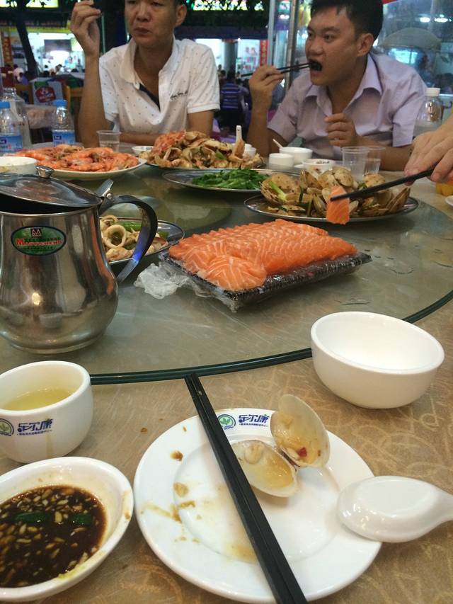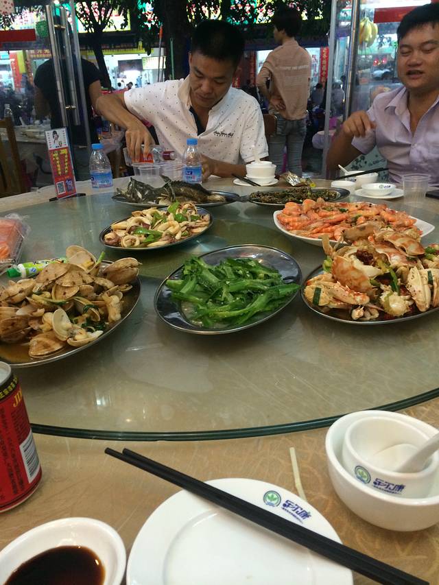 飞机下午抵达三亚凤凰机场,出机场直接坐万能的8路车到预定的酒店速8,放下行李,坐车去第一市场吃晚餐。去的是网上盛传的四川小胡子,说实话对小胡子有点失望,一般般吧,没有想象的好,我发现小胡子旁边的吴小胖,花姐海鲜也不错,而且价格更便宜,第一天海鲜大概500多吧,吃到了龙虾,象拔蚌,芒果螺,四角豆,椒盐大虾,这几个菜都特别好吃,推荐啊!!味蕾很满足