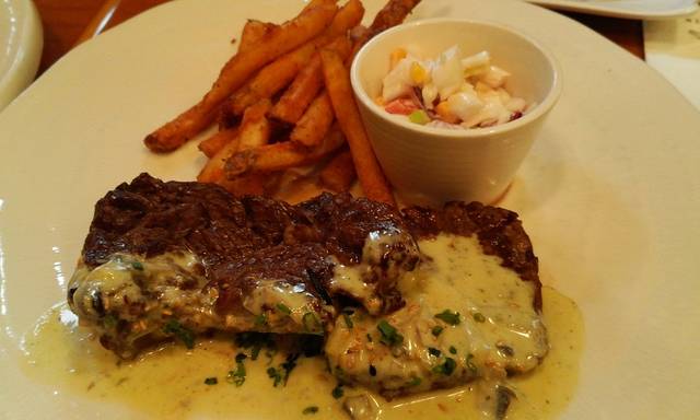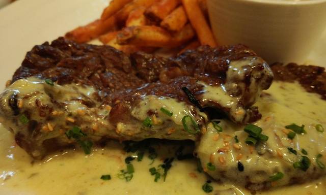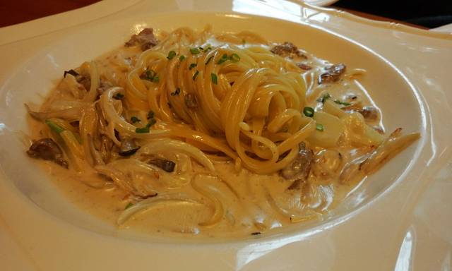 我们点了这是午餐菜单的鸡腿饭,牛排,金枪鱼籽饭(是叫这个名儿吗orz总之好像是生鱼片之类的东西)还有奶油意大利面~~~个人觉得最好吃的还是奶油意大利面,浓浓的奶香真的是超级赞啊