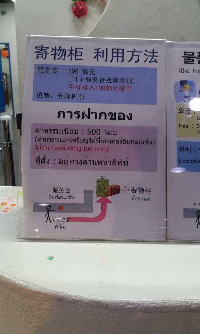 对了特丽爱还有寄物柜~~~投入硬币就能用,而且貌似前台还给换硬币~~~
