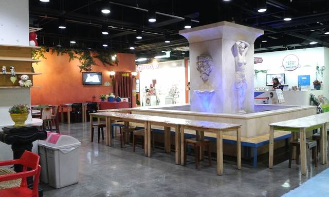 收银台和点餐的地方都在店的中间,然后点餐和取吃的都要自己上哦~~~不要等着服务员往上端