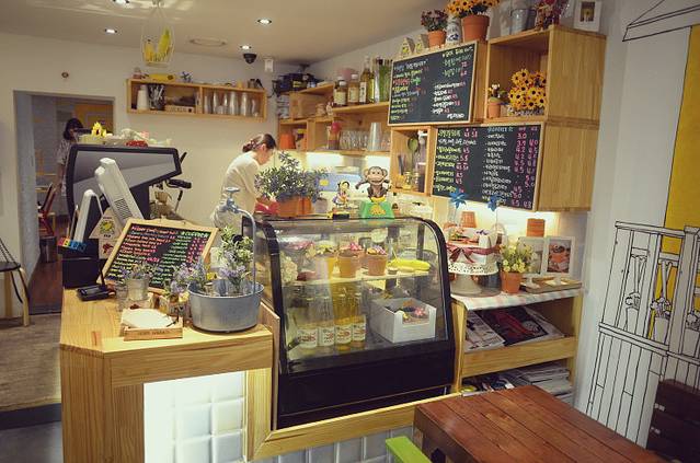 店里面的装修也像韩国其他的店面一样非常的别致恩恩。