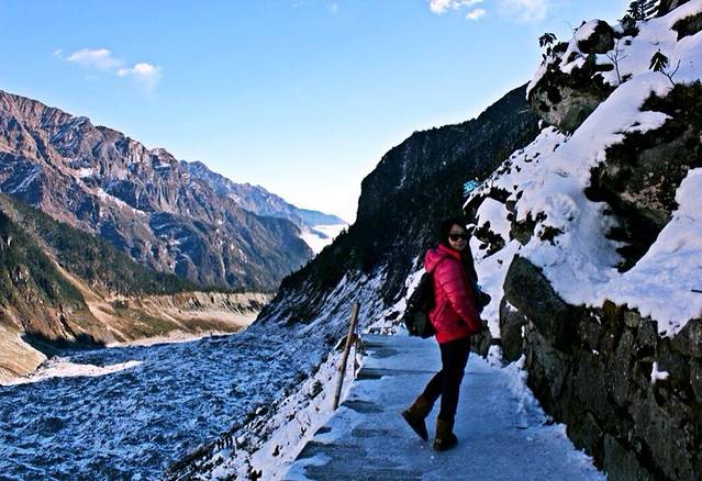 虽然云南也有玉龙雪山,梅里雪山这些,但是——海螺沟冰川是唯一可以离那么近的冰川,就辣么近,辣么近……