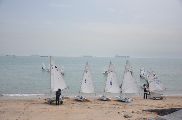 从旅店出来,10分钟步行就到了街对面的海滩,很近,所以天气好的时候,就会过去吹吹海风,坐一坐。那边也有双人,三人自行车,租的人很多,生意很好。在海边溜达的时候,偶遇到帆船俱乐部的孩子们出海训练呢。每个人都是自己拖着自己的帆船,看着挺费劲的,但是都很自立。