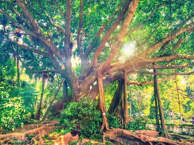 这就是我们学校校园里一棵大树,我就是觉得他长得挺奇葩的,就拍下来了。然后一天睡不着的时候瞎玩手机,没想到弄出来这么美~学校快点雇我当宣传照摄影吧!