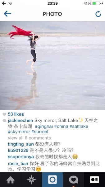 例子:如图,我在instagram上发的图,很多人感叹怎么没有人?我是在8月份,青海很火的时候去的茶卡盐湖,怎么可能没有人!茶卡盐湖出片超级唯美,可是远处星星点点的人瞬间抹杀了那份唯美感。