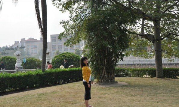 看见后面的楼了不?就是厦大最有名的那个,叫啥来着,反正就是明信片上那个。