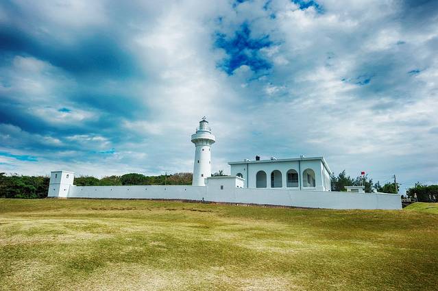 鹅銮鼻已经非常靠近台湾的最南端了,三面临海,一面背山,是太平洋、巴士海峡和台湾海峡的分界处,白色鹅銮鼻灯塔有百多年的历史了,还曾经装备过枪炮,是一座武装灯塔,现在已经成为了鹅銮鼻公园的最核心景点。灯塔区在一座小坡上,可以进去,里面的建筑也都是白色的。