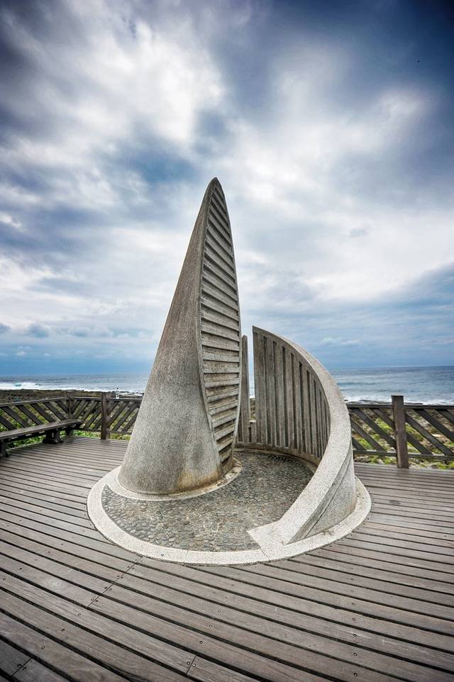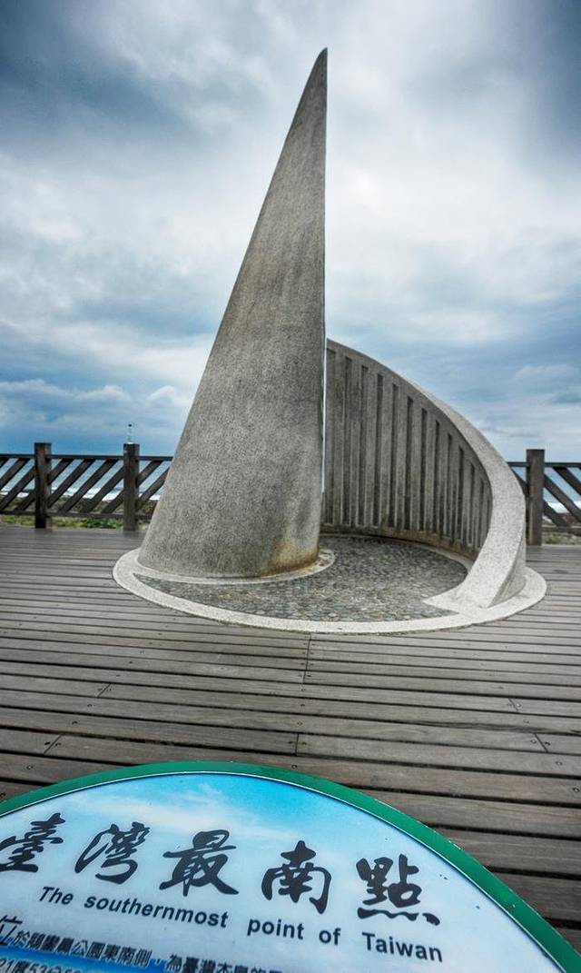 和名声在外,出镜率颇高的鹅銮鼻比起来,真正的台湾最南端就太低调了。和鹅銮鼻相距不远,走过一段掩藏在树林里的步道之后,就能看到一座又像卷起的风帆,又像海螺的建在海边的小纪念碑,这里就是整个台湾的最南点了。