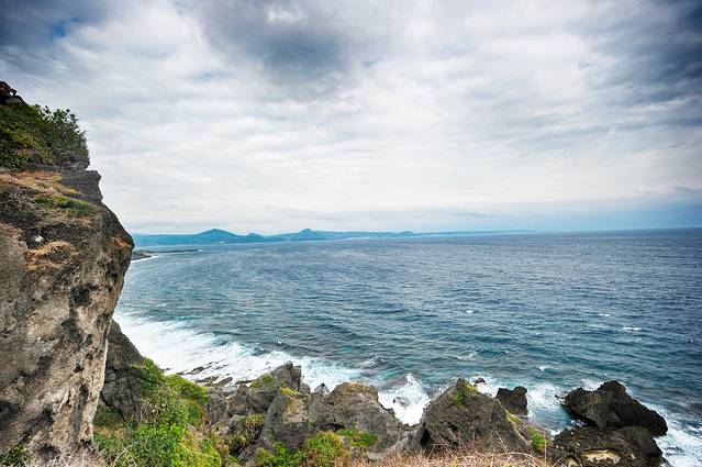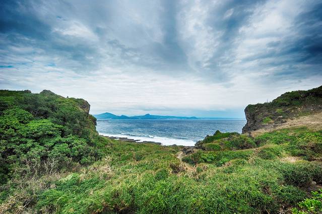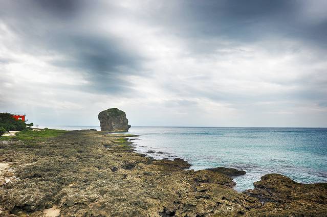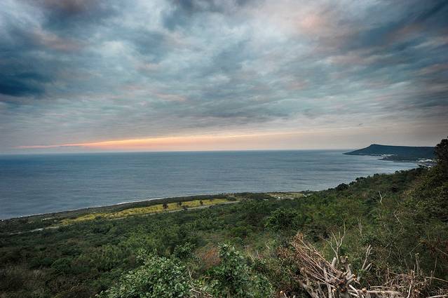 关山又名高山岩,据说是垦丁看日落最为壮美的地方,不过我们来的时候天气有些阴沉,只隐隐地望见了天边的一抹霞光。据说在天气晴好的时候,被夕阳染红的火烧云会在海面上保持一个小时之久,想来也只能脑补一番了。