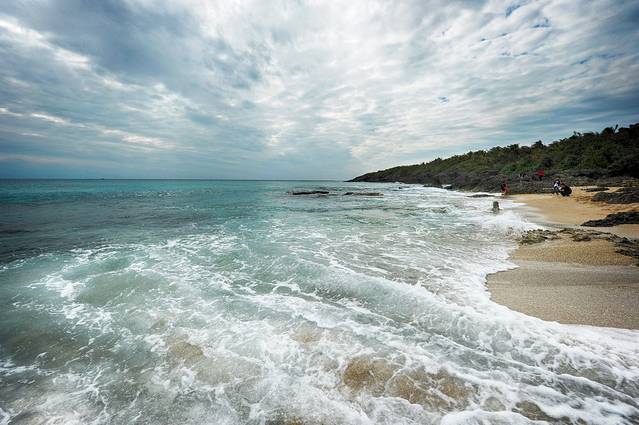 顾名思义,白沙湾主要看点就是一片长百米的长滩,这里的沙滩很细,中间掺杂有一些非常细碎的贝壳,倒是一点也不扎脚。白沙湾是描写垦丁的电影《海角七号》里阿嘉和友子拥抱的地方,在海滩上漫步,想起电影中那句著名的台词——“留下来,或者我跟你走”——爱情中,总有一个人是要多付出一些的,好在阿嘉和友子终于收获了他们的爱情。
