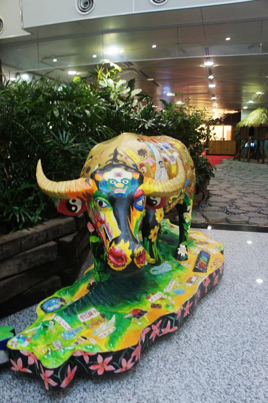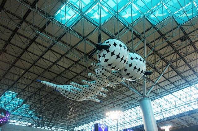 连接大陆的航班基本都在桃园机场,桃园机场有2座航站楼,我们坐的是台湾中华航空直飞北京的班机。秉承台湾“萌”社会的风格,桃园机场也有好多出巨萌巨可爱的展示台湾本土文化的候机展示厅,像阿里山啦,歌仔戏啦等等,机场里居然还有艺术展厅哦,真是不多见。